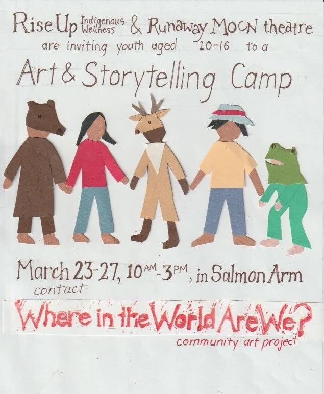 Runaway Moon Theatre is a small, but mighty theatre company based in Enderby BC, a tiny city in Secwepmec traditional territory of Splatsin First Nation in the interior of BC, that has produced puppet theatre, community plays and community spectacles for the last 25 years in locations across BC.